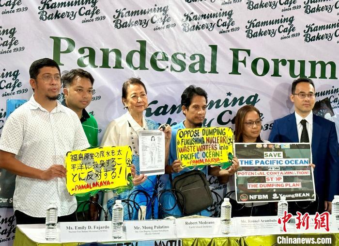 當(dāng)?shù)貢r(shí)間8月24日,一場關(guān)于反對日本核污染水排海的“面包坊論壇”在菲律賓首都馬尼拉舉行。圖為與會(huì)環(huán)保人士及漁民組織代表等手舉“堅(jiān)決反對福島核污染水排入太平洋”等標(biāo)語。中新社記者張興龍攝