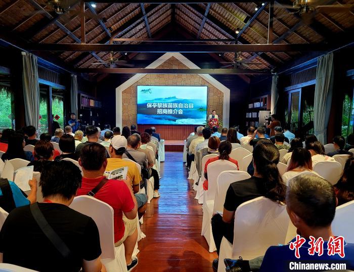 保亭縣向來訪臺灣同胞介紹當(dāng)?shù)亻_發(fā)投資項(xiàng)目?!⊥鯐员?攝