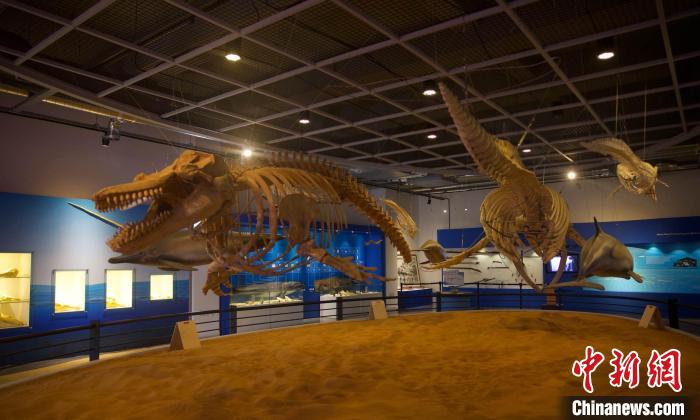 圖為蔚山長生浦鯨魚博物館展出的實(shí)物鯨魚骨骼。 中新社發(fā)王悅攝