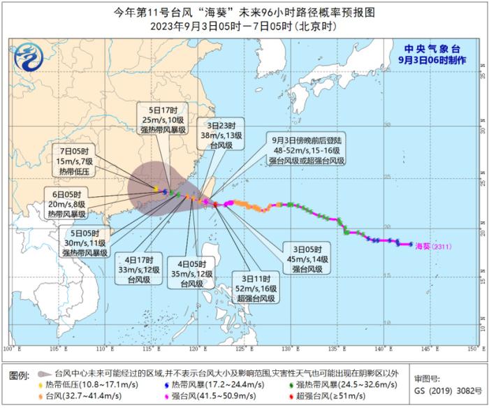 今年第11號臺風“海葵”未來96小時路徑概率預報圖