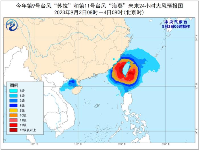 臺風“海葵”未來24小時大風預報圖(9月3日08時至4日08時)