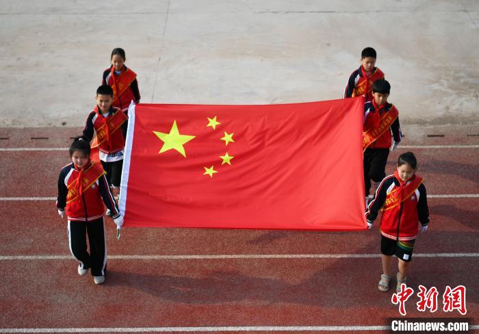 9月1日,涿州市屈家街中心學(xué)校蓮花學(xué)校的學(xué)生正在準(zhǔn)備進(jìn)行升旗儀式。 中新社記者 翟羽佳 攝