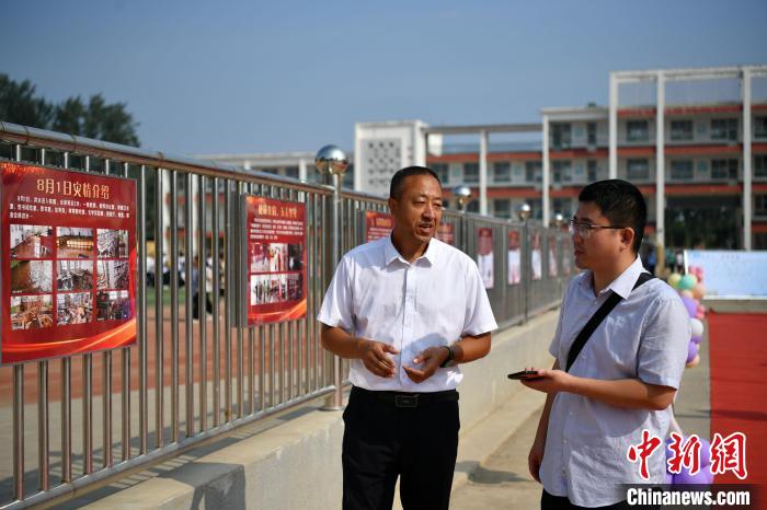 9月1日,涿州市刁窩中學(xué)校長孫常見(左)向中新社記者講述“筑夢(mèng)路”背后的故事。 中新社記者 翟羽佳 攝