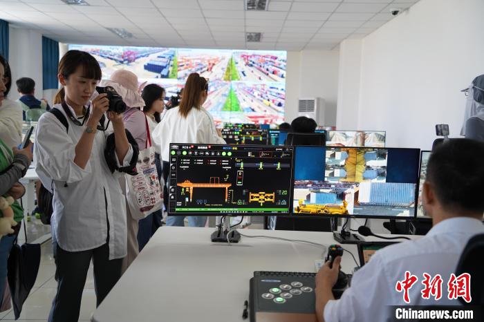 “像抓娃娃一樣”“操作桿仿佛游戲手柄”......看著工作人員在電腦上遠程操控自動化龍門吊,多位臺灣媒體人感慨,“黑科技”讓操控數(shù)噸重的集裝箱舉重若輕。