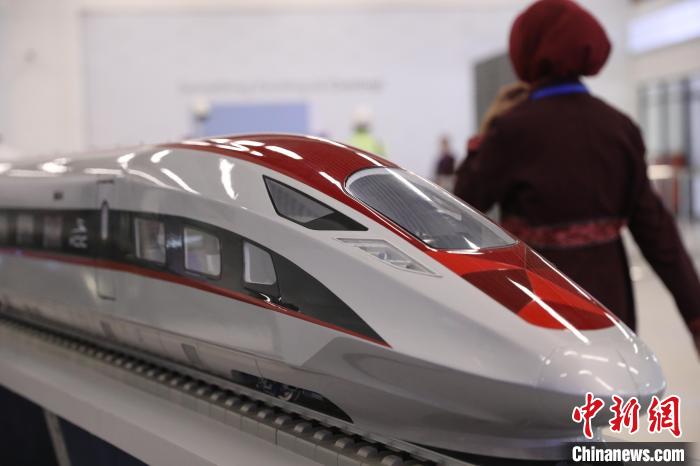 圖為工作人員從雅萬(wàn)高鐵列車模型前走過(guò)。李志全攝
