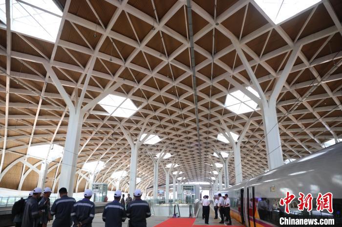 該站也是印尼首都第一站,站房建筑面積2.6萬(wàn)平方米,可滿足最高2500人同時(shí)候車,高峰每小時(shí)發(fā)送量為5200人。車站屋面采用金屬面板,菱形造型,鋼結(jié)構(gòu)網(wǎng)架,出挑深遠(yuǎn)。室內(nèi)設(shè)計(jì)采用印尼巴迪克傳統(tǒng)蠟染、中國(guó)紅等文化元素,中印尼文化巧妙融合、交相呼應(yīng)。