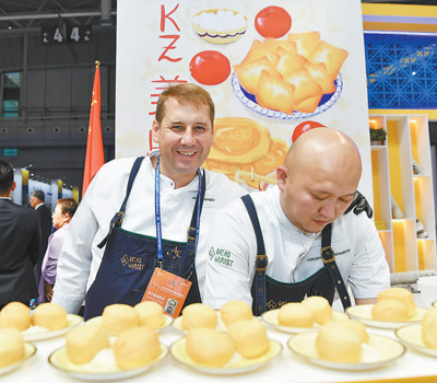 8月17日,在新疆烏魯木齊舉行的2023(中國)亞歐商品貿(mào)易博覽會上,來自哈薩克斯坦的廚師制作該國美食。