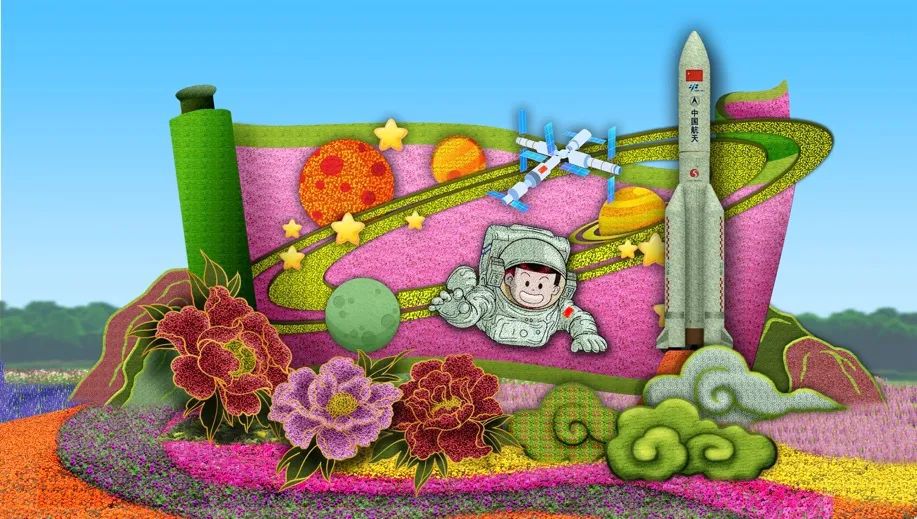 10. 復(fù)興門東北角的“筑夢(mèng)未來”花壇頂高8.5米,以中國(guó)航天員、空間站為主景,寓意航天強(qiáng)國(guó)建設(shè)蓬勃發(fā)展,助力中國(guó)夢(mèng)早日實(shí)現(xiàn),全面推進(jìn)中華民族偉大復(fù)興,譜寫新時(shí)代中國(guó)特色社會(huì)主義更加絢麗的華章。