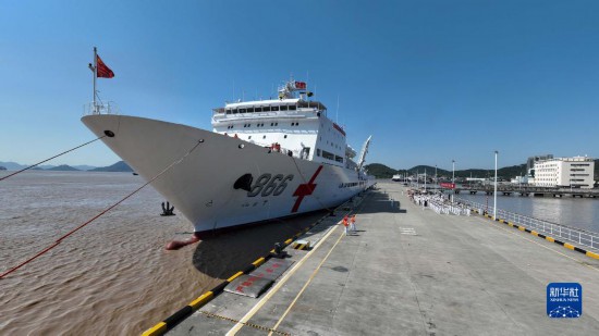 9月19日,執(zhí)行“和諧使命-2023”任務的海軍“和平方舟”號醫(yī)院船順利返回浙江舟山母港。新華社發(fā)(桂江波 攝)
