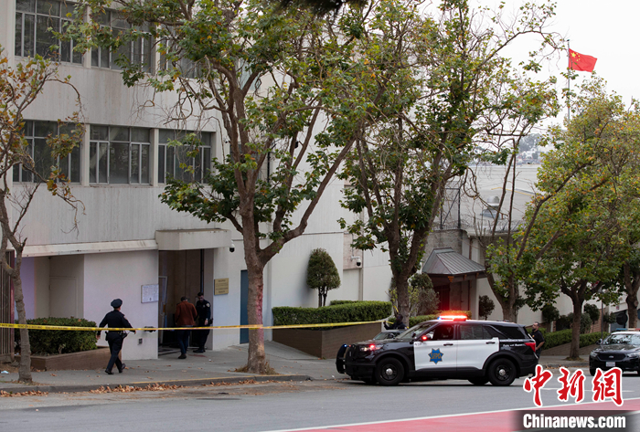 當(dāng)?shù)貢r(shí)間10月9日,美國(guó)舊金山警方在中國(guó)駐舊金山總領(lǐng)館附近對(duì)總領(lǐng)館館舍遭沖闖襲擊事件展開調(diào)查。中國(guó)駐舊金山總領(lǐng)館發(fā)言人表示,9日下午,有不明身份人員駕車暴力沖撞闖入中國(guó)駐舊金山總領(lǐng)館證件大廳,對(duì)工作人員及現(xiàn)場(chǎng)民眾生命安全構(gòu)成嚴(yán)重威脅,對(duì)總領(lǐng)館設(shè)施與財(cái)產(chǎn)造成嚴(yán)重破壞,性質(zhì)極其惡劣。 中新社記者 劉關(guān)關(guān) 攝