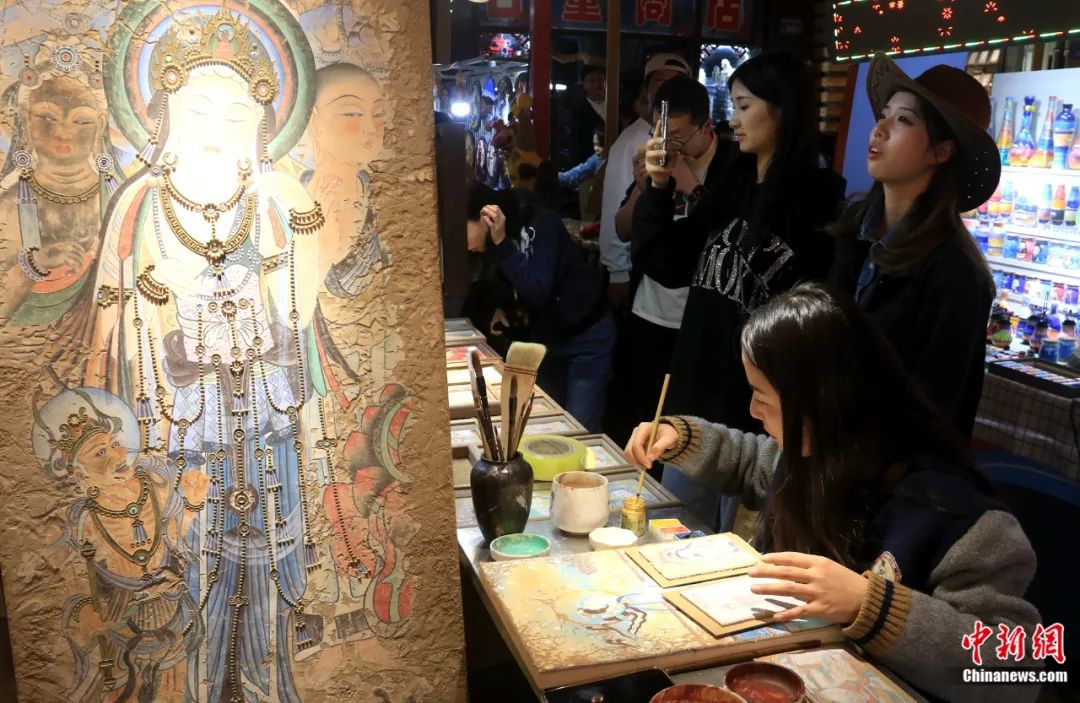 游客在敦煌夜市選購(gòu)泥板畫(huà)。張曉亮 攝