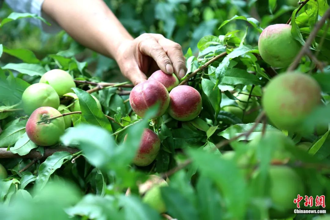 敦煌農(nóng)民采摘紫胭桃。張曉亮 攝