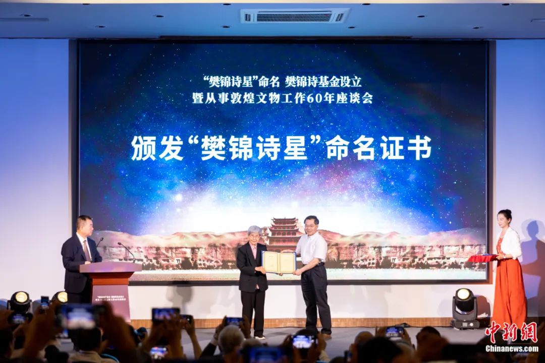 2023年7月10日,“樊錦詩(shī)星”命名、樊錦詩(shī)基金設(shè)立暨樊錦詩(shī)從事敦煌文物工作60年座談會(huì)在甘肅敦煌舉行。敦煌研究院供圖