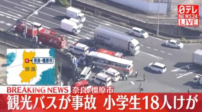 據(jù)報(bào)道,事發(fā)時車內(nèi)共有34名小學(xué)生,另外還有3名教師,一行人原本是計(jì)劃前往奈良公園參加遠(yuǎn)足活動,但在橿原市一個路口發(fā)生車禍。