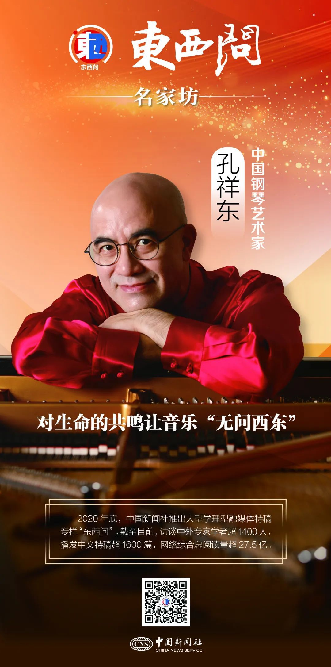 在中新社“東西問”專訪前,坐在鋼琴邊的孔祥東便來了靈感,手落樂起,黑白躍動(dòng)間,即興之作鏗錚流淌而成。