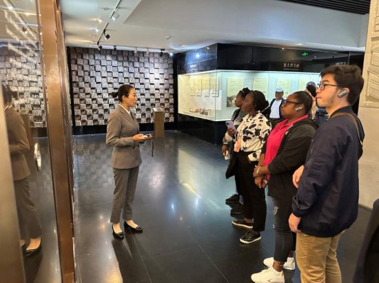 10月23日,在中國(guó)酒文化城,2023“一帶一路”媒體合作論壇聯(lián)合采訪團(tuán)團(tuán)員認(rèn)真聆聽(tīng)講解。本報(bào)記者 劉書(shū)文攝