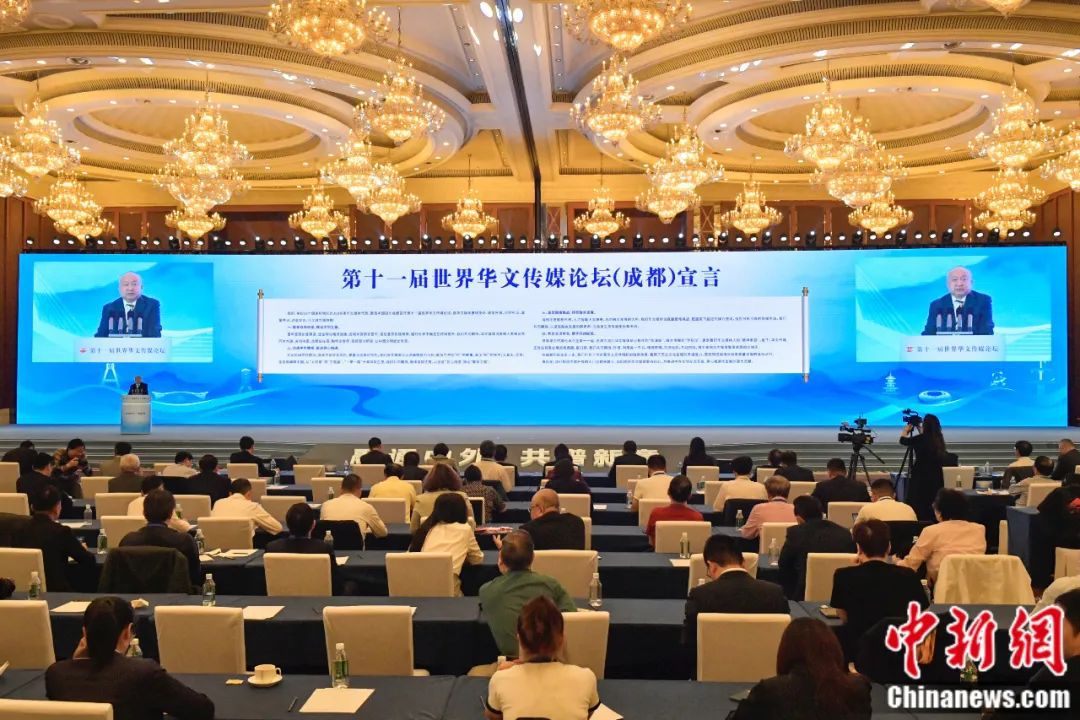 中國新聞社總編輯張明新宣讀了《第十一屆世界華文傳媒論壇(成都)宣言》,呼吁華文媒體秉持初心,為推動中外文明交流互鑒、民心相通作出新的更大貢獻。