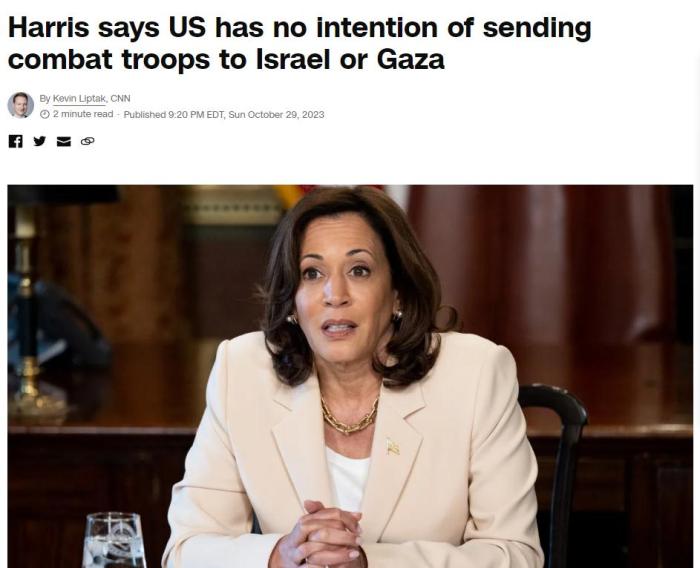 中新網(wǎng)10月30日電 據(jù)美國有線電視新聞網(wǎng)(CNN)報道,在當(dāng)?shù)貢r間29日播出的節(jié)目中,美國副總統(tǒng)哈里斯表示,出于對更廣泛地區(qū)沖突的擔(dān)憂,美國“絕對無意”向以色列或加沙地帶派遣美國作戰(zhàn)部隊。