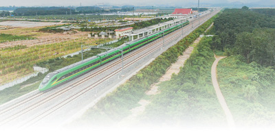 10月22日,動(dòng)車(chē)從中老鐵路橄欖壩站駛出(無(wú)人機(jī)照片)。