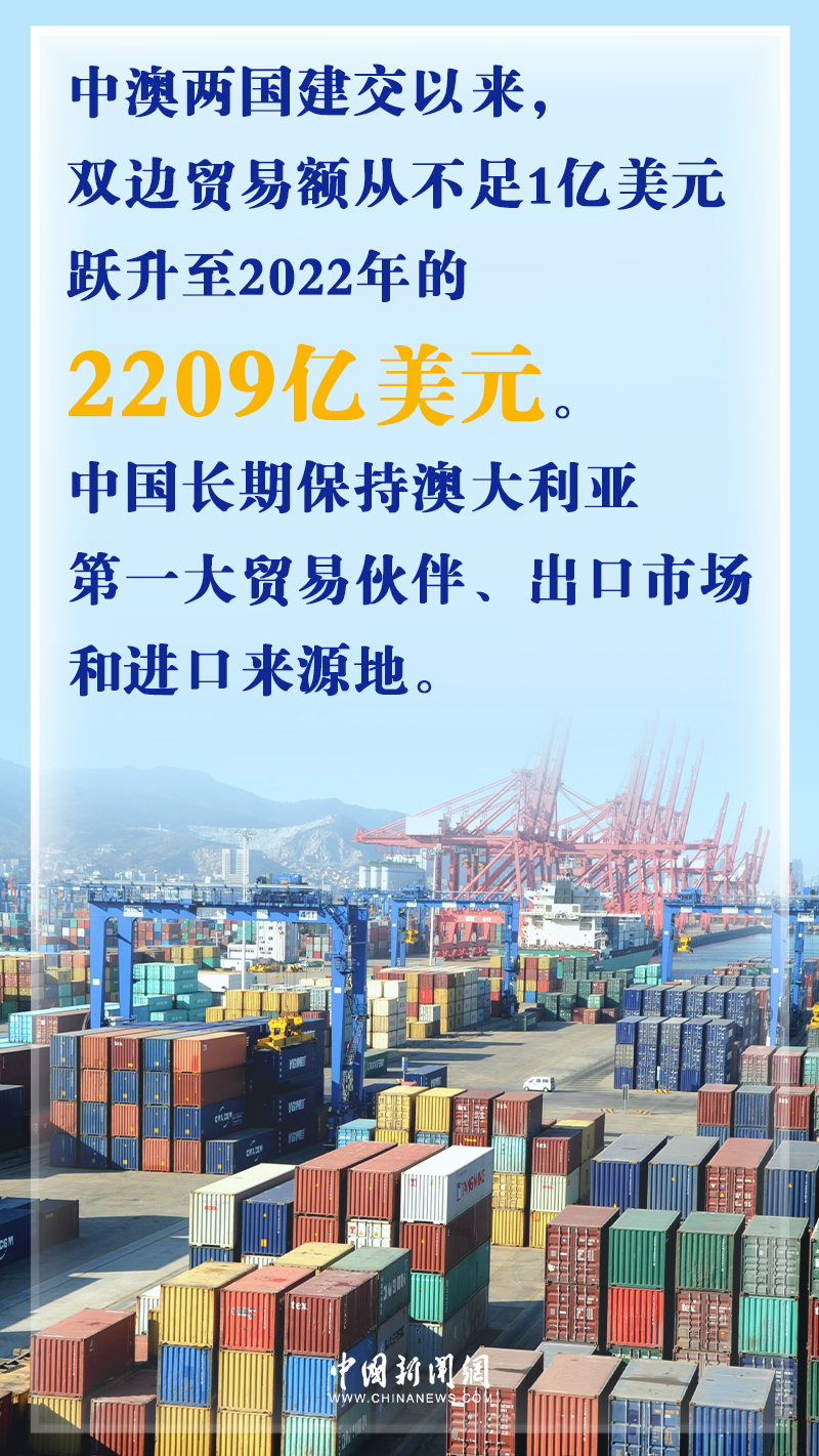 據(jù)中國駐澳大利亞大使館網(wǎng)站數(shù)據(jù),中澳兩國建交50年來,雙邊貿易額從當時不足1億美元,躍升至2022年的2209億美元。中國長期保持澳大利亞第一大貿易伙伴、出口市場和進口來源地的地位。與此同時,越來越多的澳大利亞優(yōu)質農產(chǎn)品走進中國家庭,豐富了中國消費者的選擇。