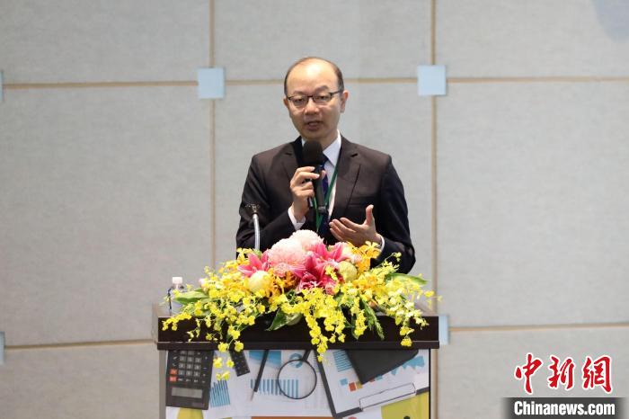 臺灣經(jīng)濟研究院8日在臺北舉辦2024年景氣展望與產(chǎn)業(yè)趨勢研討會,臺經(jīng)院景氣預測中心主任孫明德發(fā)言?!≈行律缬浾? 陳小愿 攝