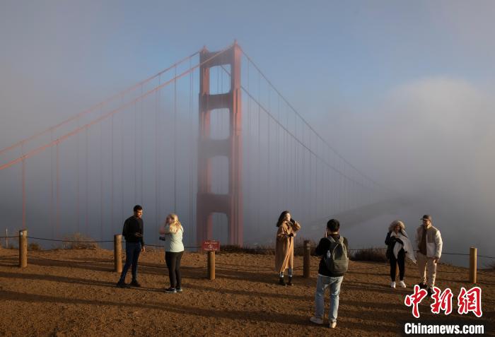 當(dāng)?shù)貢r(shí)間11月4日,游客參觀舊金山金門大橋?!≈行律缬浾? 劉關(guān)關(guān) 攝