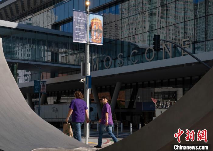 當(dāng)?shù)貢r(shí)間11月7日,民眾從舊金山莫斯康中心附近經(jīng)過(guò)?!≈行律缬浾? 劉關(guān)關(guān) 攝