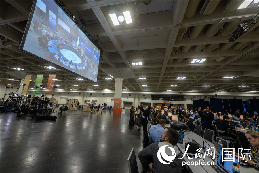 當?shù)貢r間11月16日,美國舊金山,在APEC國際媒體中心,媒體記者忙碌工作。