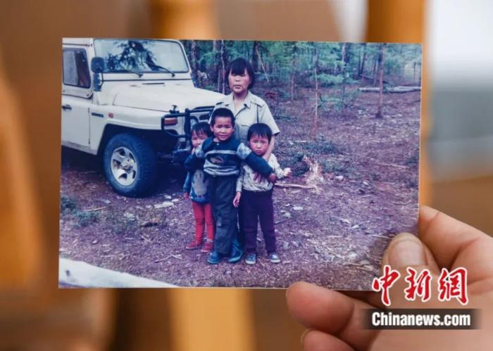 1998年夏,時年35歲的柳霞與兒子雨果及烏云、烏蘭合影。王偉 攝