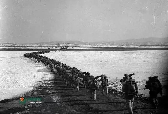 1950年冬,中國人民志愿軍跨過鴨綠江。圖片來源:中國軍網(wǎng)