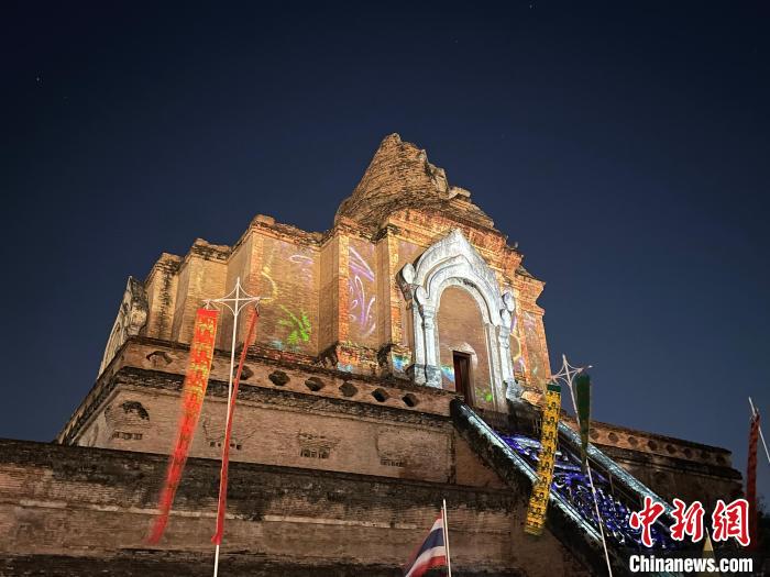 這些栩栩如生的投影如同一部生動(dòng)的電影,講述著泰北的歷史、文化和信仰。在夜色中,契迪龍寺的佛塔變成了一個(gè)故事的舞臺(tái),吸引著無數(shù)的游客和信徒前來觀看。