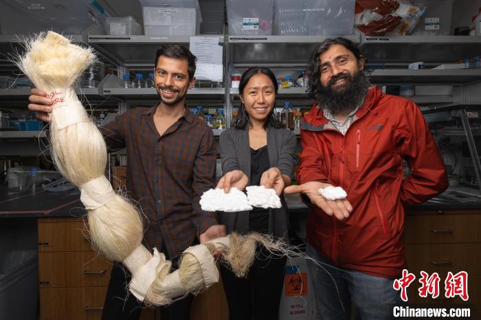 研究人員展示作為吸水填充物的劍麻(圖片來自斯坦福大學(xué)Andrew Brodhead)。施普林格·自然 供圖