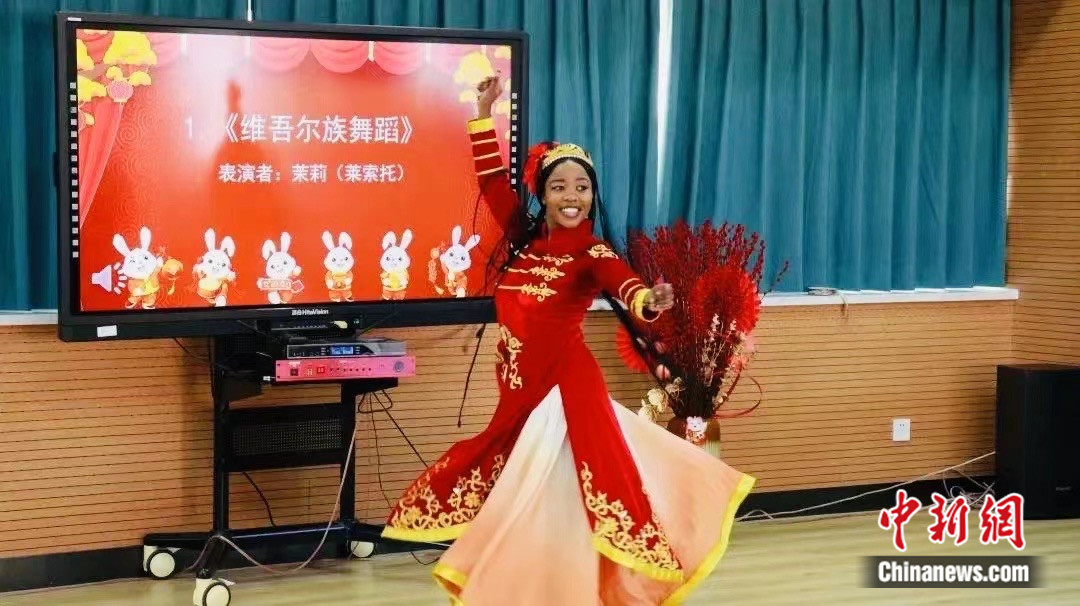圖為就讀于西北師范大學的萊索托留學生茉莉表演維吾爾族舞蹈。受訪者供圖