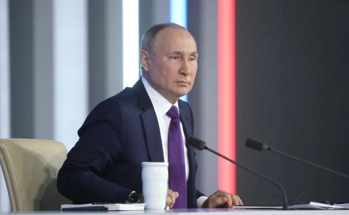 資料圖:2021年12月,普京在持續(xù)近4小時(shí)的年度記者會(huì)上回答了55個(gè)問(wèn)題,涉及俄羅斯內(nèi)政、中俄關(guān)系、俄烏關(guān)系等。圖片來(lái)源:俄羅斯克里姆林宮網(wǎng)站