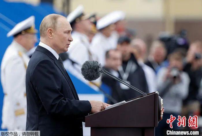 資料圖:2022年7月31日,俄羅斯總統(tǒng)普京在俄海軍節(jié)閱兵式上發(fā)表講話(huà)。