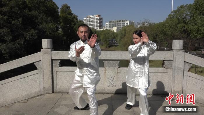 美莎和常州大學(xué)體育學(xué)院碩士生導(dǎo)師 ,國(guó)家武術(shù)教練員一級(jí)裁判員許曉陽(yáng)學(xué)習(xí)太極。葛勇 攝