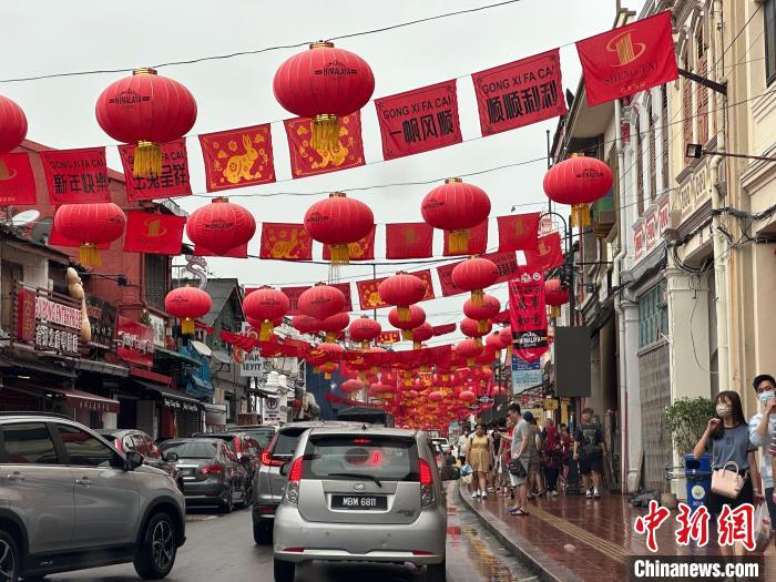 每逢中國農(nóng)歷新年,馬六甲雞場(chǎng)街都布置得極具年節(jié)喜慶氣氛。圖片攝于2023年1月24日?! ≈行律缬浾?陳悅 攝