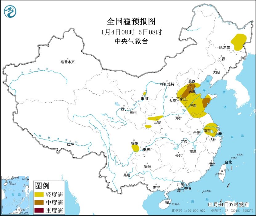 中央氣象臺今晨繼續(xù)發(fā)布大霧黃色預(yù)警:預(yù)計(jì),今晨至上午,山東南部、安徽中北部、江蘇大部、湖北中部、湖南北部、江西東部、福建西部、四川盆地南部等地的部分地區(qū)有大霧,其中山東南部、江蘇南部、安徽中部、湖北中部、江西東部等地的部分地區(qū)有能見度低于500米的濃霧,局地有能見度低于200米的強(qiáng)濃霧。此外,今明兩天,華北南部、黃淮中東部、江淮等地?cái)U(kuò)散條件較差,有輕至中度霾。