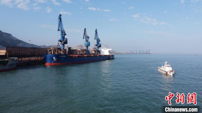 中新網(wǎng)福州1月5日電 (曾欽宇 陳沁林)5日,在福州海事部門(mén)現(xiàn)場(chǎng)護(hù)航下,蒙羅維亞籍散貨船“CL LIANYUNGANG”穩(wěn)穩(wěn)??吭陂L(zhǎng)樂(lè)松下港牛頭灣作業(yè)區(qū)12#泊位,這是牛頭灣作業(yè)區(qū)12#、13#對(duì)外開(kāi)放以來(lái)首次??客廨?。