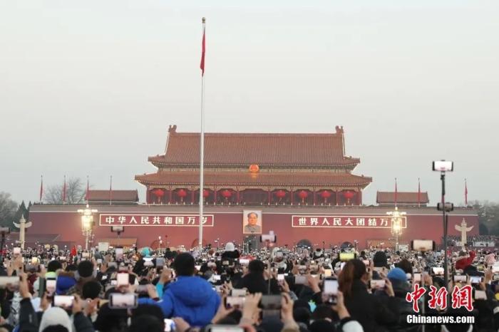 2024年1月1日晨,北京天安門廣場舉行隆重的升國旗儀式。中新社記者 蔣啟明 攝
