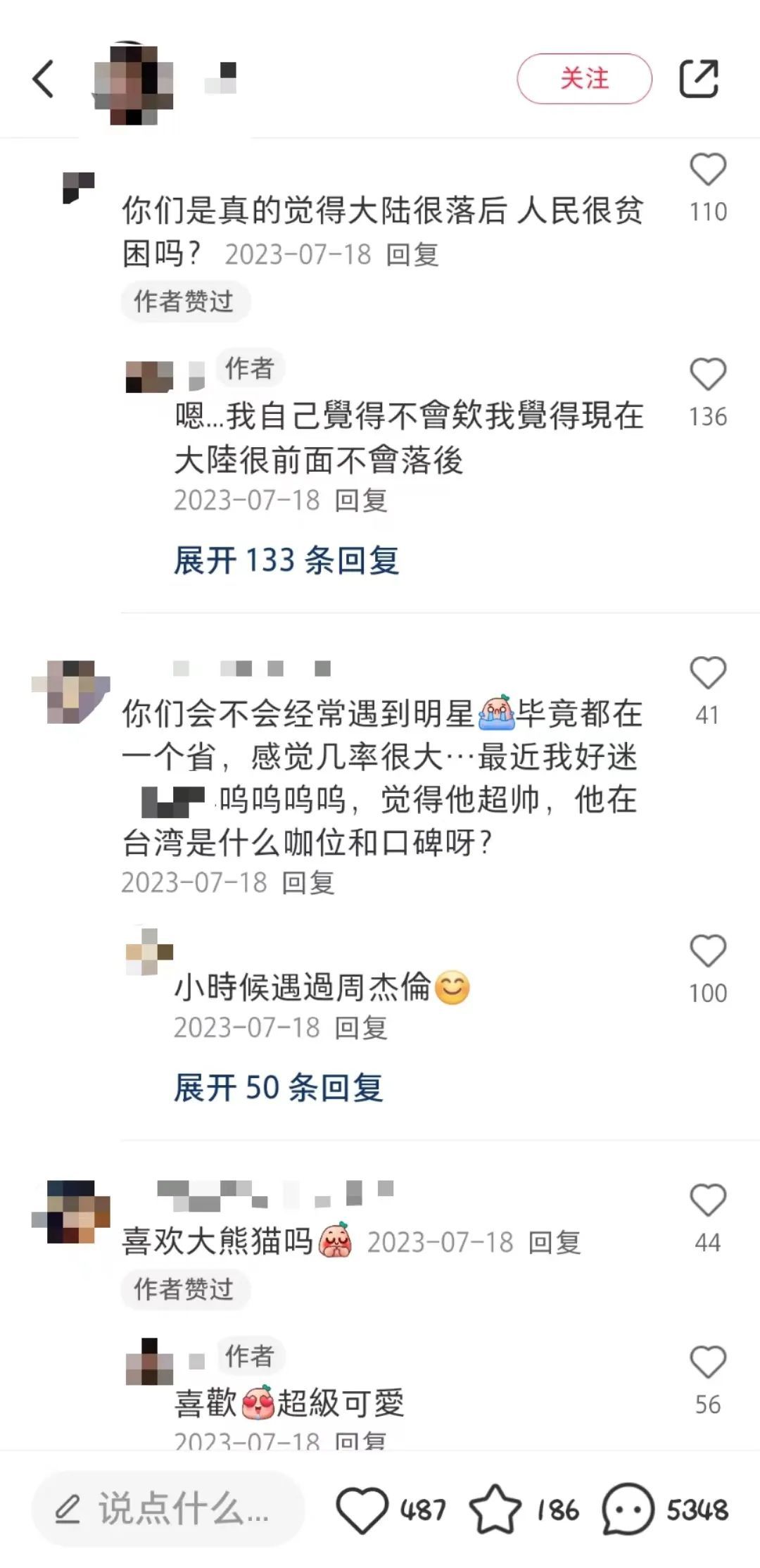“大陸哪個城市的美食多?”“用現(xiàn)金支付可以嗎?”“畢業(yè)后想去大陸工作,可以分享一下經(jīng)驗嗎?”……小紅書上有不少“臺灣人問,大陸人答”的帖子,兩岸年輕人就生活、文化、飲食等話題,在評論區(qū)留言、互動。當然,也有臺灣年輕人現(xiàn)身回答島內(nèi)情況,同樣熱評紛紛。