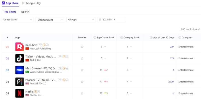 這些出海短劇雖“土”,卻在2023年國產應用軟件賽道闖出一片天。據AppGrowing統(tǒng)計,ReelShort已經成為全球短劇市場的頂級產品,其母公司股價持續(xù)上漲。
