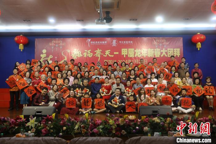 當(dāng)?shù)貢r(shí)間28日上午,這些書法愛(ài)好者齊聚印尼書畫學(xué)院,參加“‘龍’福齊天——甲辰龍年新春大團(tuán)拜”活動(dòng)?;顒?dòng)由印尼書法家協(xié)會(huì)和印尼書畫學(xué)院聯(lián)合舉辦。