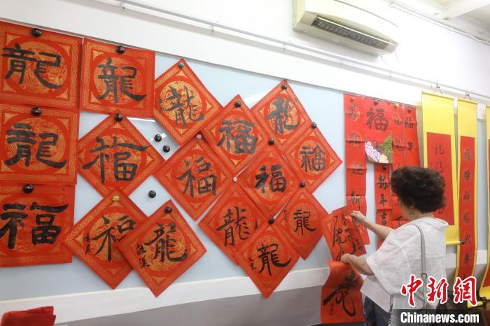 中新網(wǎng)雅加達(dá)1月29日電 (陳詩(shī)夢(mèng))“龍年大吉”“龍鳳呈祥”“龍馬精神”……走進(jìn)位于雅加達(dá)北部的印尼書畫學(xué)院,一幅幅獨(dú)具韻味的書法作品傳遞出一個(gè)個(gè)新年祝福。這些作品皆出自印尼各地的書法愛(ài)好者。