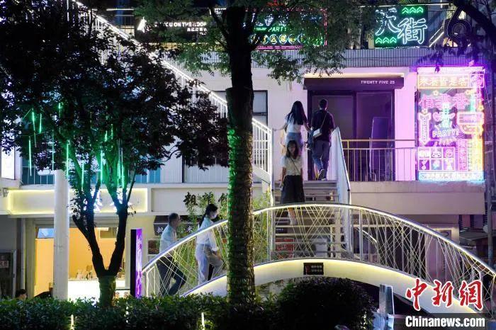 圖為游客在西安大雁塔景區(qū)步行街游覽“詩(shī)詞長(zhǎng)街”。 李一璠 攝