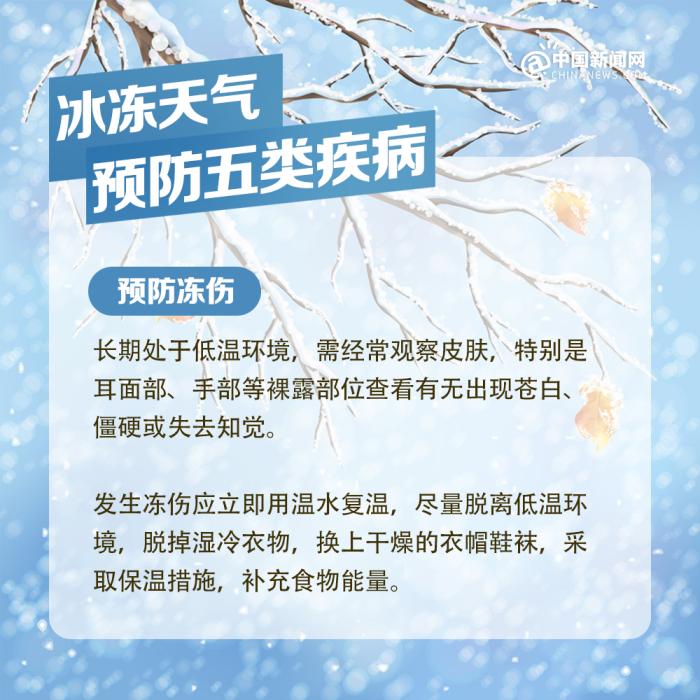 中新網(wǎng)北京2月7日電 近期我國(guó)中東部地區(qū)出現(xiàn)大范圍持續(xù)性低溫雨雪冰凍天氣過(guò)程,局部地區(qū)累計(jì)降雪量將接近或超過(guò)歷史同期,雨雪覆蓋范圍廣、持續(xù)時(shí)間長(zhǎng)、凍雨范圍大,雨雪冰凍災(zāi)害風(fēng)險(xiǎn)高,恰逢春節(jié)人員大規(guī)模流動(dòng),以下健康防護(hù)要點(diǎn)請(qǐng)查收。