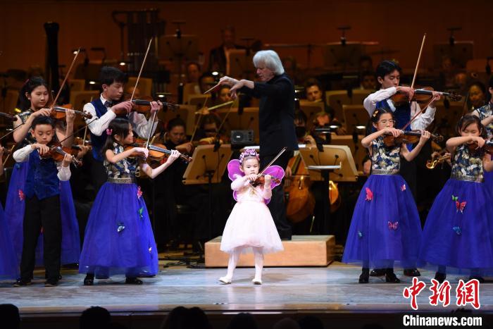 當(dāng)?shù)貢r(shí)間2月10日晚,美國(guó)太平洋交響樂團(tuán)與橙郡音樂與舞蹈藝術(shù)中心的孩子們合作演奏小提琴協(xié)奏曲《梁?!贰!≈行律缬浾? 張朔 攝