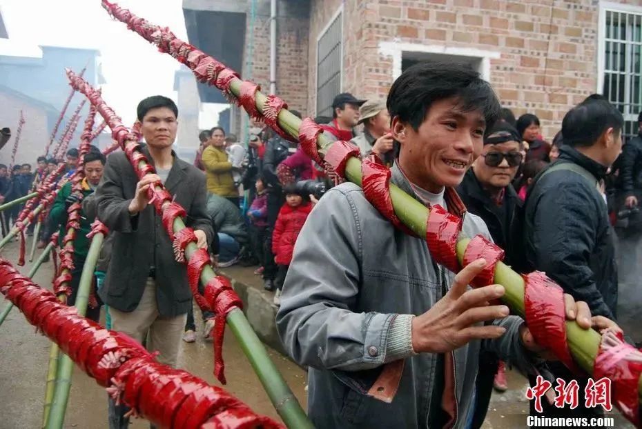 圖為江西省寧都縣石上鎮(zhèn)村民在燃放添丁炮。劉學恩 攝