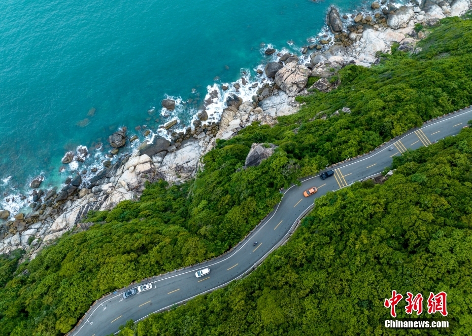 海南環(huán)島旅游公路三亞太陽灣段。(無人機照片)。中新社記者 駱云飛 攝