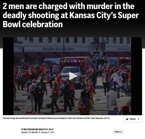 此前報道,美國密蘇里州堪薩斯城14日在舉行美國職業(yè)橄欖球大聯(lián)盟“超級碗”勝利游行時發(fā)生槍擊事件,造成至少1人死亡、20余人受傷。